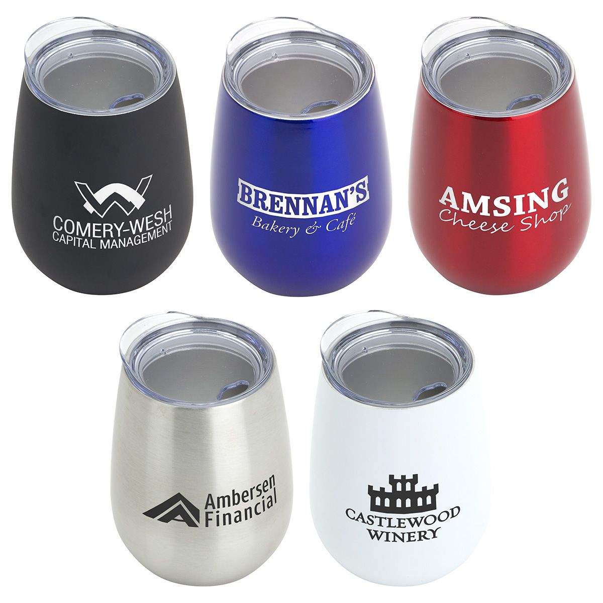 Another great choice for events, this sleek wine goblet features a vacuum sealed lid to prevent spills and it can certainly be used for more than just wine. Add your logo to your clients’ new favorite cup that keeps drinks cold or hot for up to six hours!